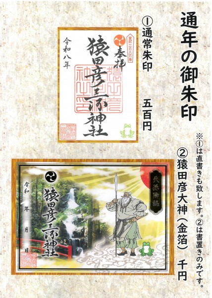 通年の①御朱印は直書きもいたしますが、他はすべて書置きのみとさせていただきます。